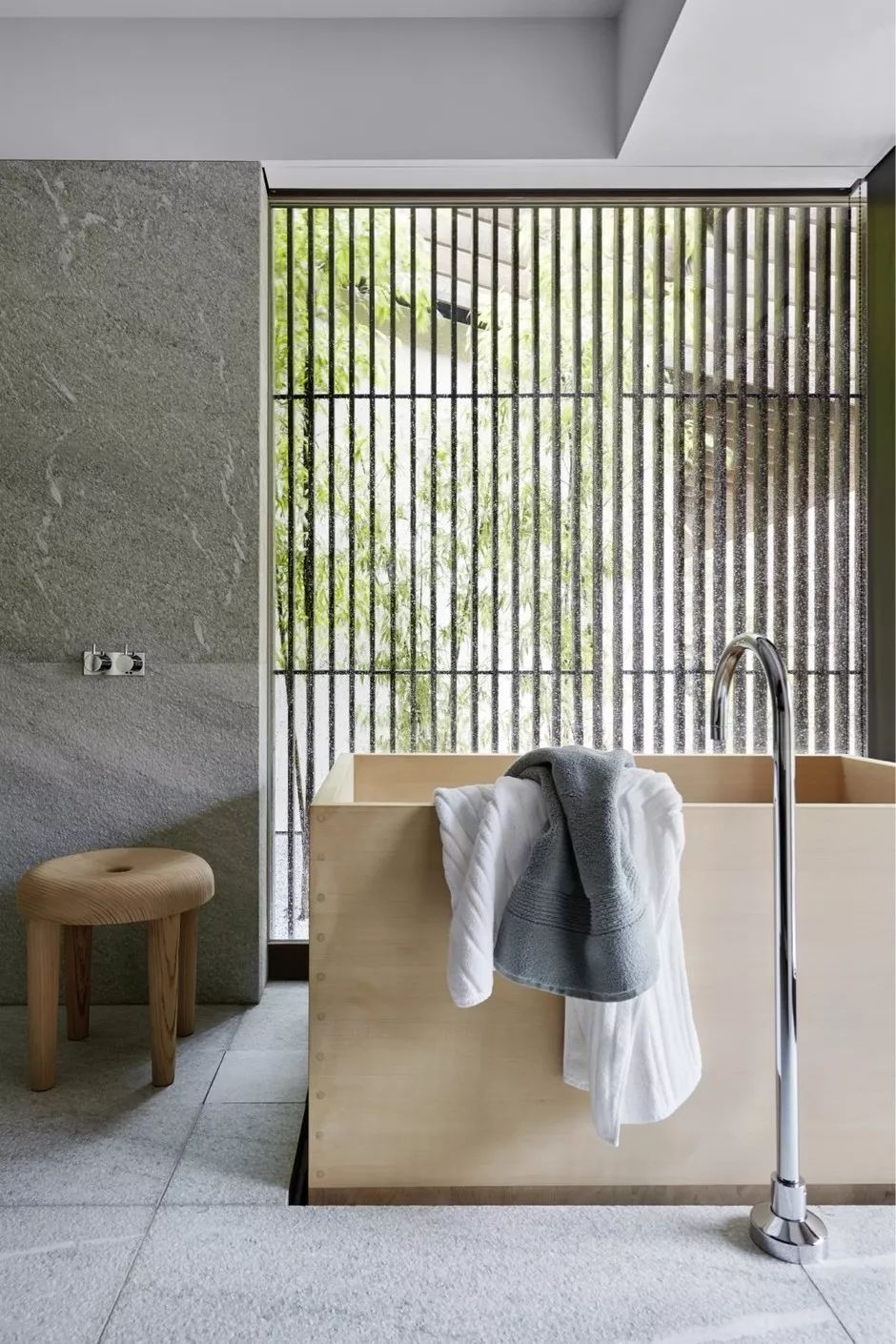 为了在浴室中营造宁静且和谐的氛围,专家建议使用均质材料。小瓷砖和马赛克逐渐让位于浴室装饰中的更现代饰面:大幅面瓷砖,天然石材,油漆,石膏,混凝土。