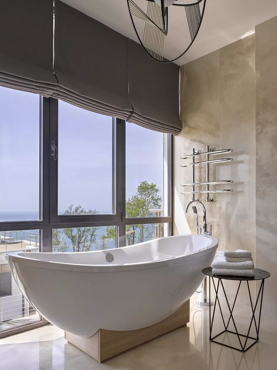 专家称,浴室内部光滑,流线型的建筑细节也有助于放松心情。例如,墙壁上有一个漂亮的弧线外廓,您可以在其底部空间安装浴缸,这种解决方案会令人产生安全感以及亲密感。