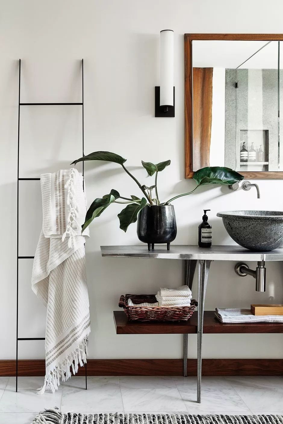 现代浴室中需要有些植物元素。专家认为,浴室中的活植物为室内带来温暖和舒适的氛围,有助于营造放松的氛围,并有助于将其转变为真正的家居中心(秉承现代设计趋势)。